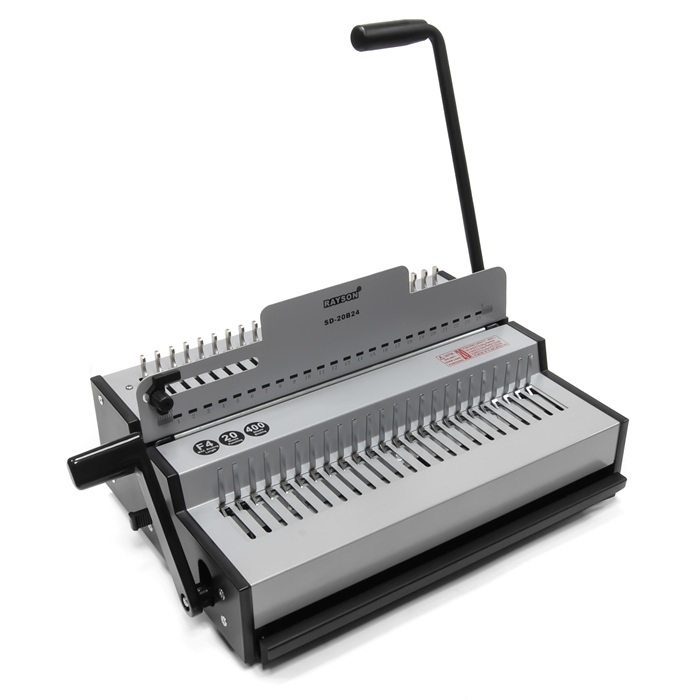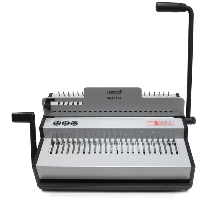 Переплетная машина на пластиковую пружину Rayson SD-20B24 представляет собой компактное устройство с профессиональными характеристиками, идеально подходящее для создания аккуратных документов, таких как отчеты, презентации и личные записи. Среди ключевых особенностей - способность работать с пружинами диаметром от 6 до 51 мм, обеспечивая переплет до 500 листов бумаги плотностью 80 г/м². Модель оснащена ручным дыроколом, способным пробивать до 17 листов указанной плотности или до 20 листов меньшей, с вертикальной перфорацией и держателем для выравнивания страниц.
