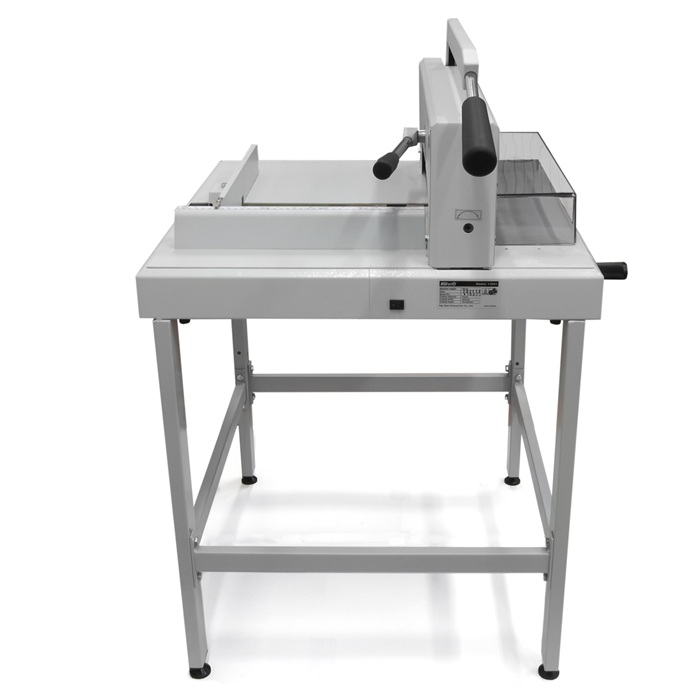 - Длина и глубина реза: Максимальная длина реза - 430 мм, глубина - 405 мм, минимальная глубина - 35 мм. Это позволяет обрабатывать стопы бумаги высотой до 55 мм, что эквивалентно нескольким сотням листов стандартной офисной бумаги.