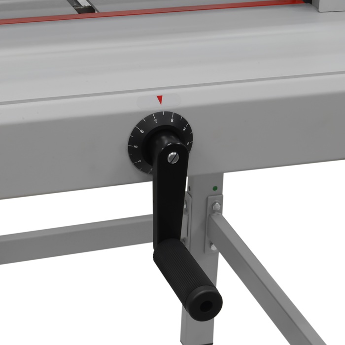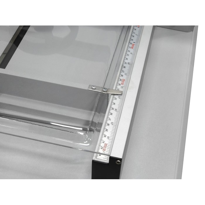 Шкала, нанесенная на станину, позволяет точно перемещать затл до нужных размеров. Цифры «0-9» показывают расстояние в мм. «0» - означает целый сантиметр. Точная регулировка возможна только в том случае, когда бумага упирается в затл и он перемещается с помощью рукоятки.