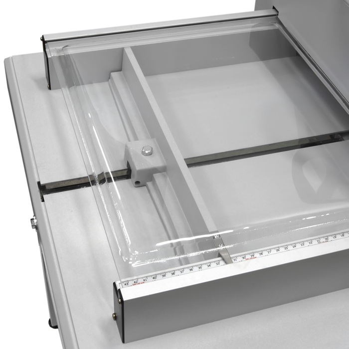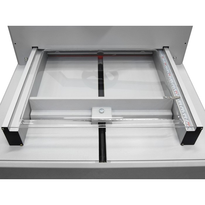Одним из ключевых преимуществ KW-triO 3946 является инновационный винтовой механизм прижима бумаги. Он создает равномерное давление на стопу, позволяя обрабатывать пачки высотой до 60 мм без смещений или деформаций. Благодаря этому, каждый рез получается идеально ровным и качественным. Длина реза достигает 430 мм, что позволяет работать с форматами до A3 и больше, охватывая широкий спектр полиграфических нужд. Гильотина оснащена защитным экраном из прочного ABS-пластика с интегрированной системой блокировки ножа. Когда экран открыт, нож фиксируется в верхнем положении, исключая случайные травмы. Это особенно важно в условиях, где скорость и точность сочетаются с заботой о пользователях.