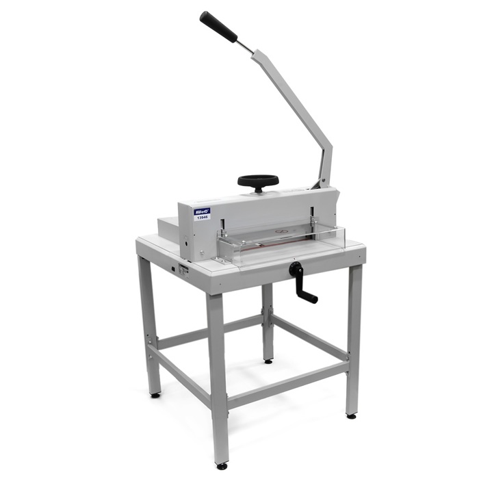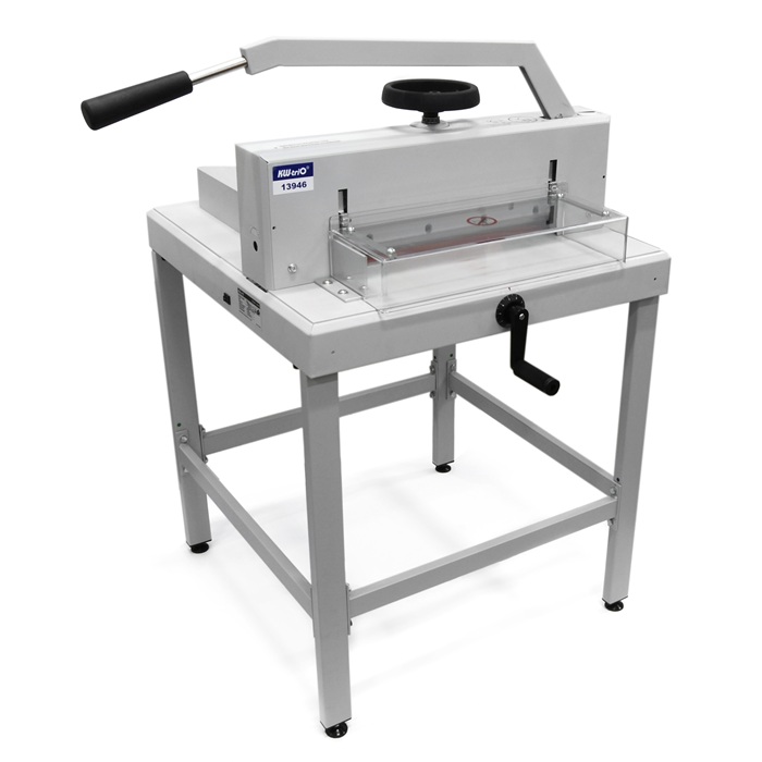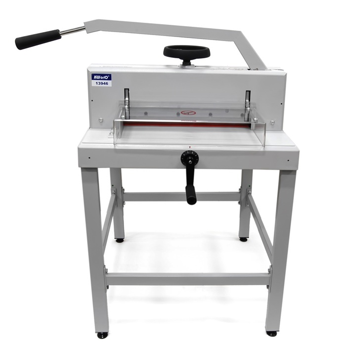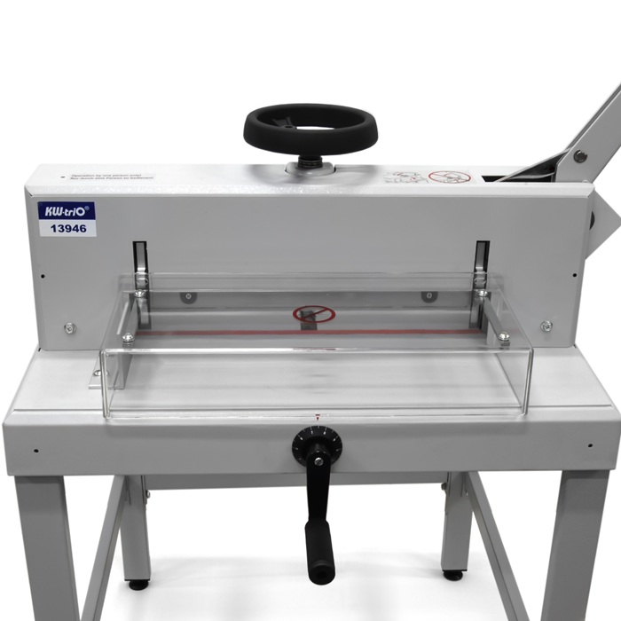 KW-triO 3946/13946 – это высококлассная напольная гильотина, идеально подходящая для интенсивной эксплуатации в копировальных центрах, типографиях и полиграфических мастерских. Эта модель выделяется среди аналогов своей исключительной надежностью и долговечностью, обеспечивая стабильную работу даже при больших объемах задач. Она предназначена для аккуратной резки разнообразных материалов: от стандартных бумажных бланков и визиток до плотной фотобумаги, что делает ее универсальным инструментом для профессионалов.