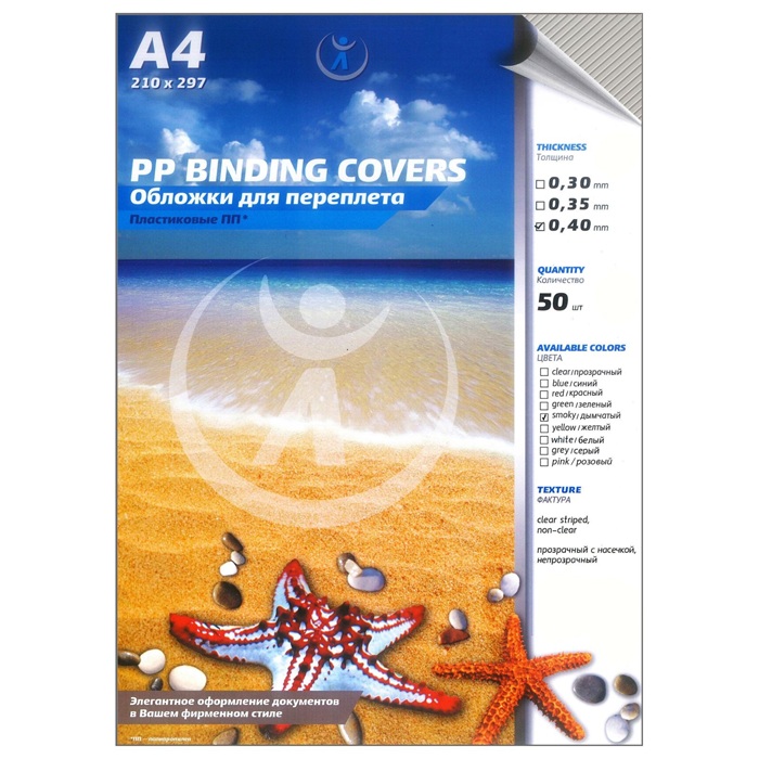 Обложка для переплета пластиковая желтого цвета используется при брошюровке документов чаще всего как верхняя обложка. Пластиковая обложка для переплета хорошо защищает страницы от пыли и грязи, придает документу более строгий и презентабельный вид. Эта обложка прозрачная, дымчатая, поэтому через нее виден текст, напечатанный на листе бумаги, на котором лежит обложка. Поверхность обложки украшают диагональные линии (рифление). Толщина обложки 0,40 мм. Формат А4. В одной упаковке 50 штук обложек. Материал обложки ПП (полипропилен) - это дорогой материал, поэтому обложка придает документу солидность. Подходит ко всем типам брошюраторов и переплетных машин.