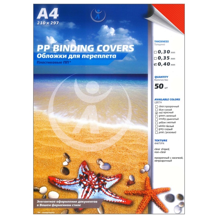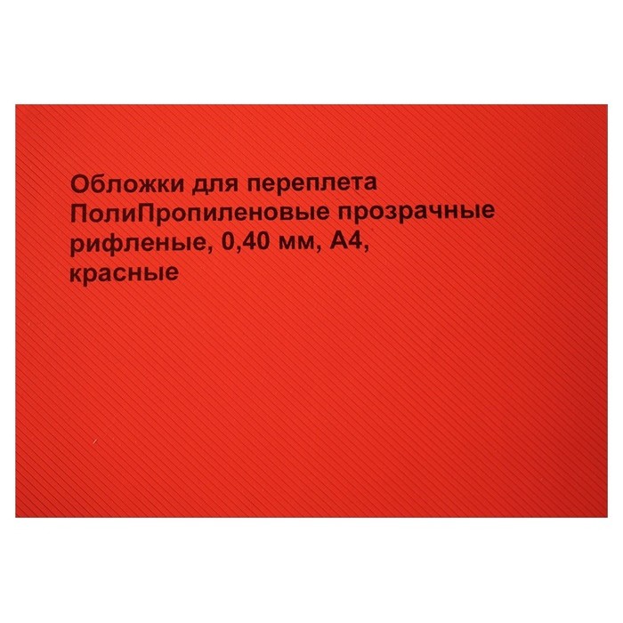 Обложка для переплета пластиковая желтого цвета используется при брошюровке документов чаще всего как верхняя обложка. Пластиковая обложка для переплета хорошо защищает страницы от пыли и грязи, придает документу более строгий и презентабельный вид. Эта обложка прозрачная, красная, поэтому через нее виден текст, напечатанный на листе бумаги, на котором лежит обложка. Поверхность обложки украшают диагональные линии (рифление). Толщина обложки 0,40 мм. Формат А4. В одной упаковке 50 штук обложек. Материал обложки ПП (полипропилен) - это дорогой материал, поэтому обложка придает документу солидность. Подходит ко всем типам брошюраторов и переплетных машин.