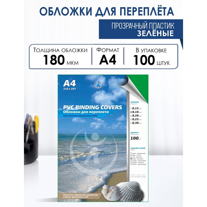Материал: высококачественный ПВХ (поливинилхлорид). Подходят ко всем видам переплётных машин и брошюраторов: пластиковая пружина, металлическая пружина, канальный переплёт, переплёт на болтах. Идеально для курсовых, дипломов, отчётов, презентаций, коммерческих предложений и любых документов, которым нужна надёжная защита и презентабельный вид.