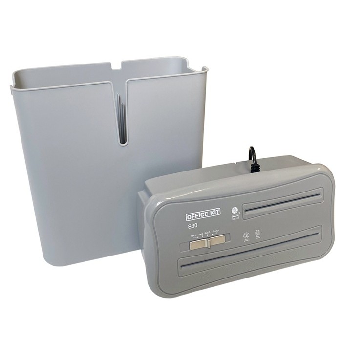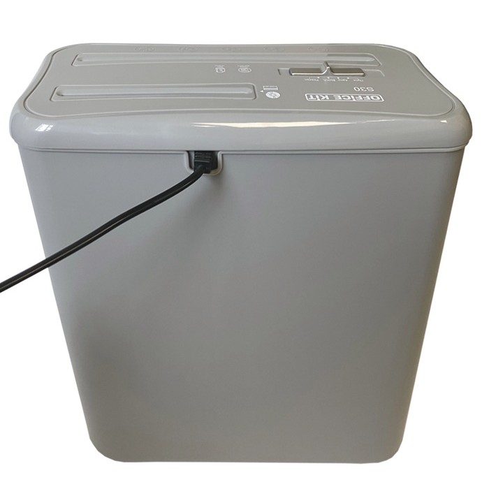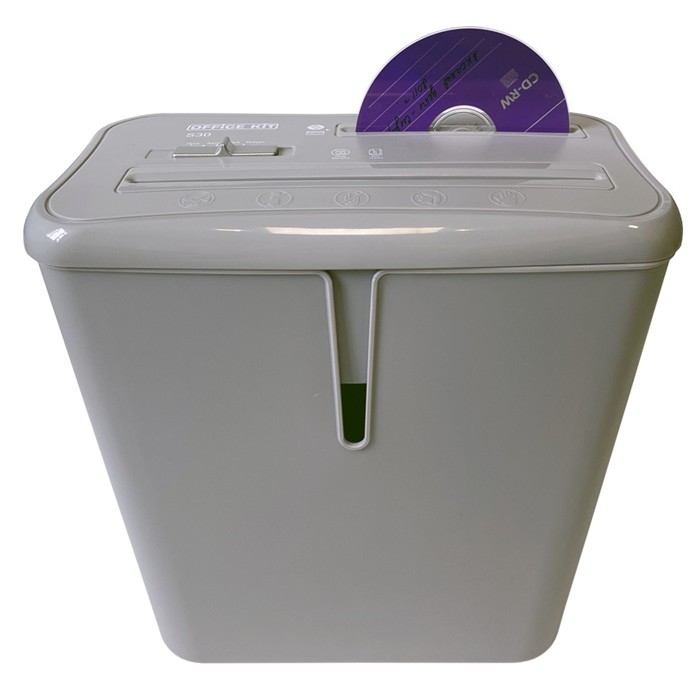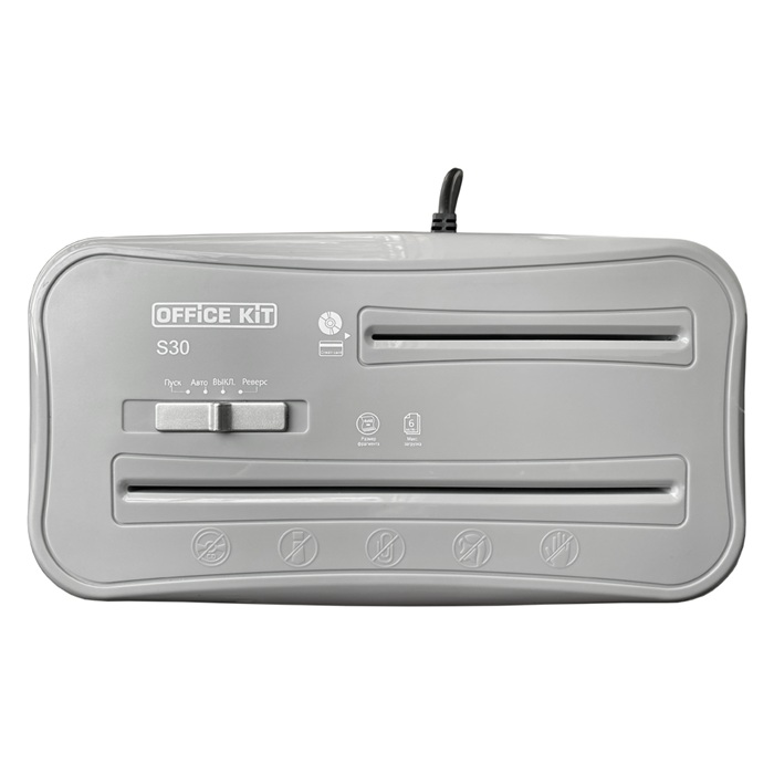 Уничтожитель Office Kit S30 до 6 листов 70г/м2 единовременно шириной до 220 мм. В результате уничтожения материала меньшего формата, такого как конверты, квитанции, загружайте их по центру загрузочного окна. Аппарат также позволяет уничтожать пластиковые карты и CD/DVD